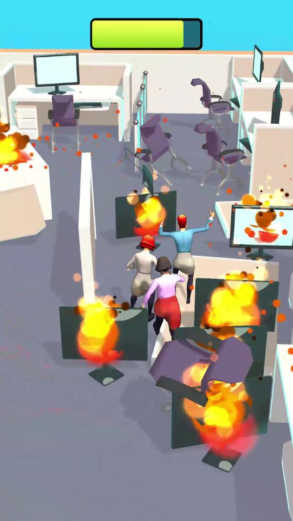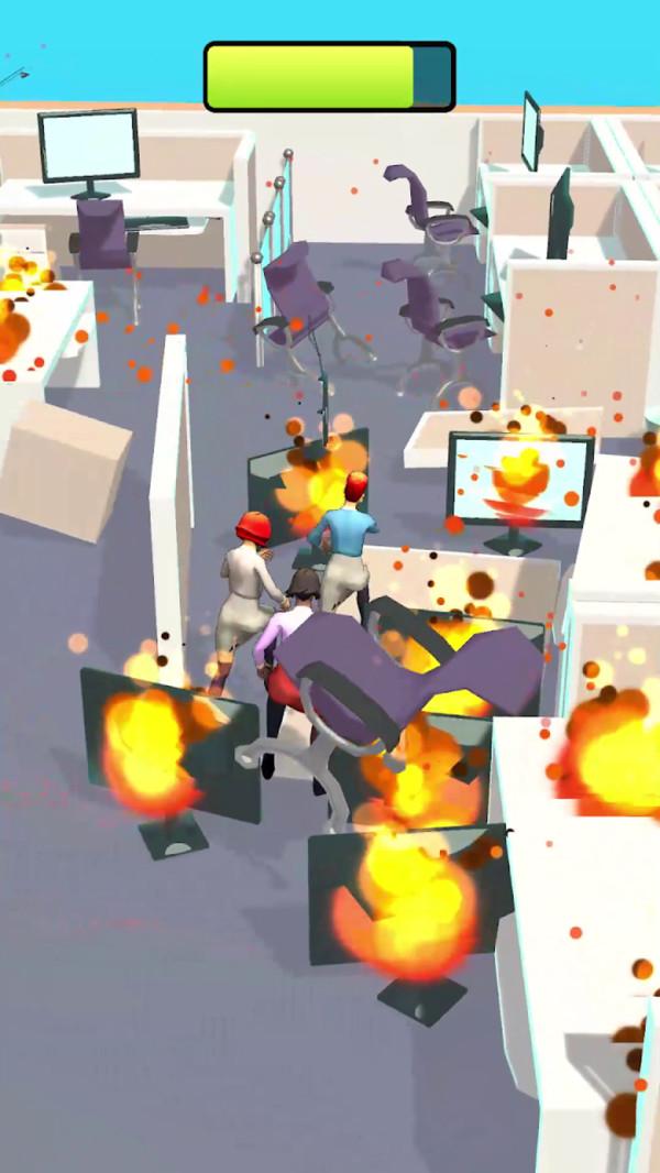 疯狂破坏王是一款模拟解压类游戏,纵杆控制燃烧办公室的计算机,尽情的破坏吧,燃烧计算机就不用工作了,阻止你的同事去灭计算机的火,制造办公室的混乱,尽情的狂欢,释放压力。