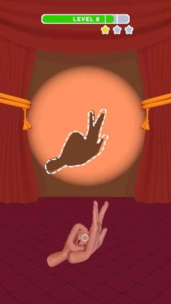 皮影艺术手游是一款非常有趣的创意艺术类的休闲游戏,玩家在游戏中可以体验到我们老一辈流传下来的皮影戏的魅力,每一个皮影戏的样子都对应一个手势才能做出来,玩家所要做的就是将手势按照皮影戏的样子给模拟正确。