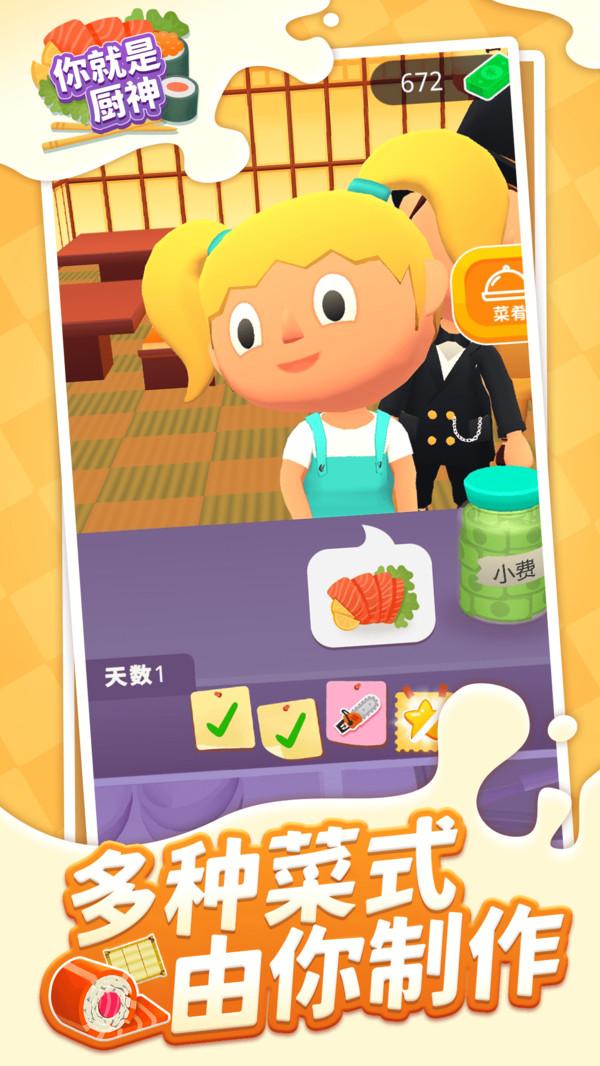 你就是厨神官方版是一款主模拟真实做菜的游戏,游戏中拥有超级多的菜色。并且每一个菜色都有对应的菜谱供玩家去选择挑选,你可以跟着菜谱一起学习这些料理烹饪的方式,并且随着你的厨艺精湛会有更多的客人来光临。