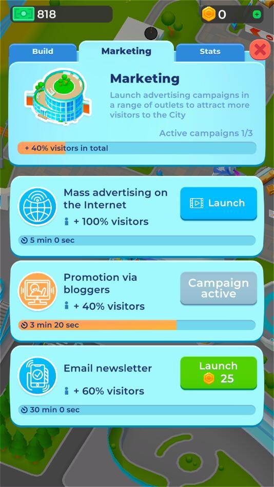 玩家将在游戏中建设和发展一座城市,让城市变得更加丰富,不断吸引游客消费;