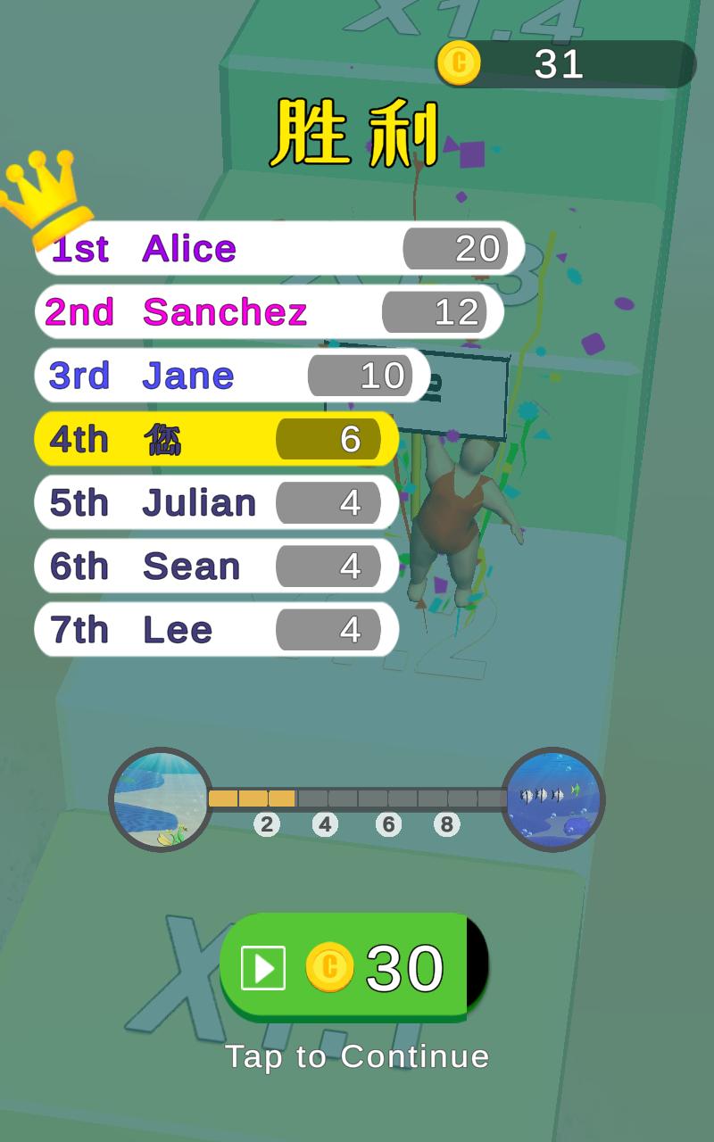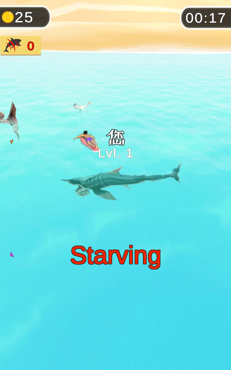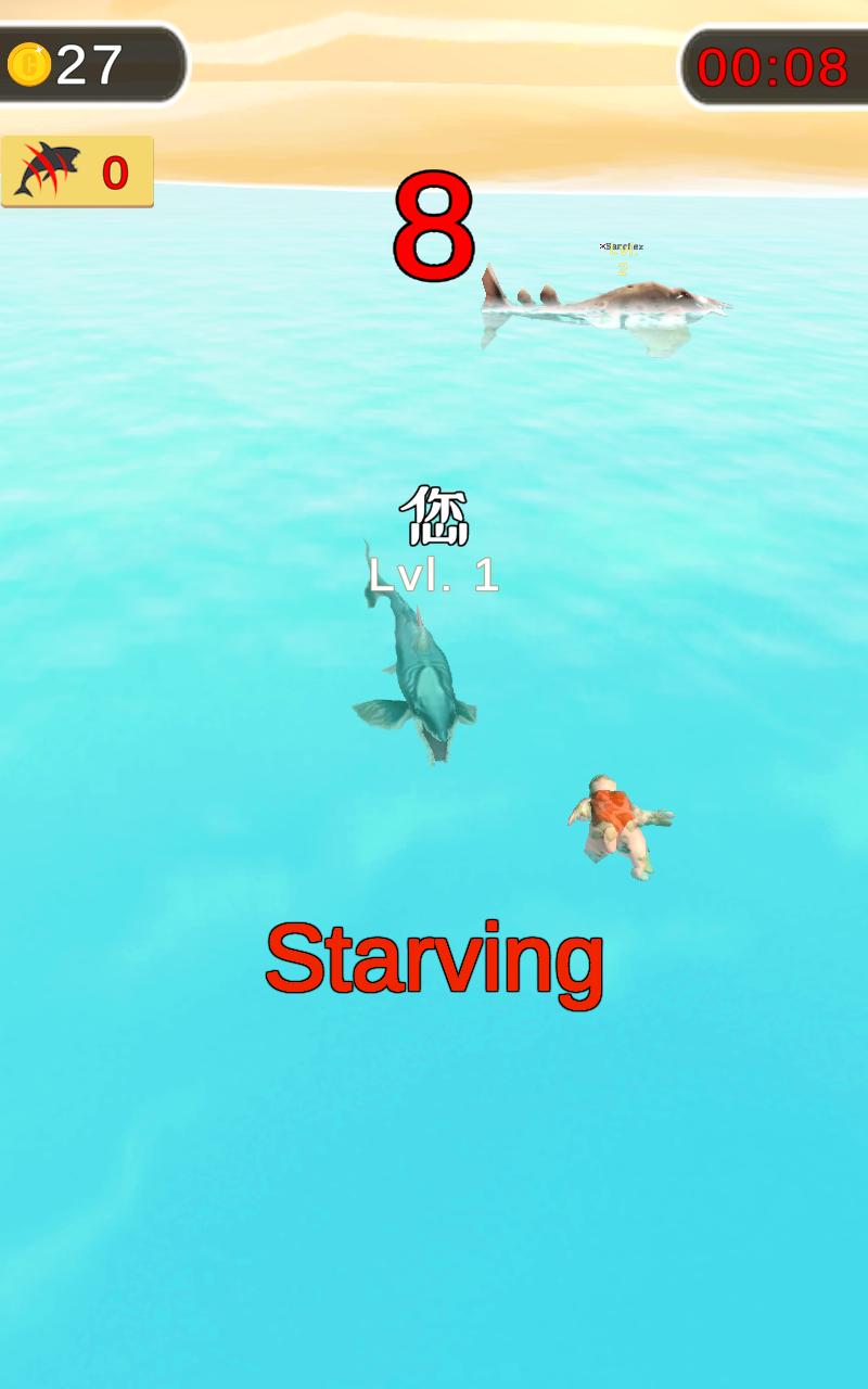 为了生存,你需要不断地寻找东西。你可以吃海面或海底的任何东西,包括海面上的游泳者和海鸥。你吃得越多,你就会变得越大越快
