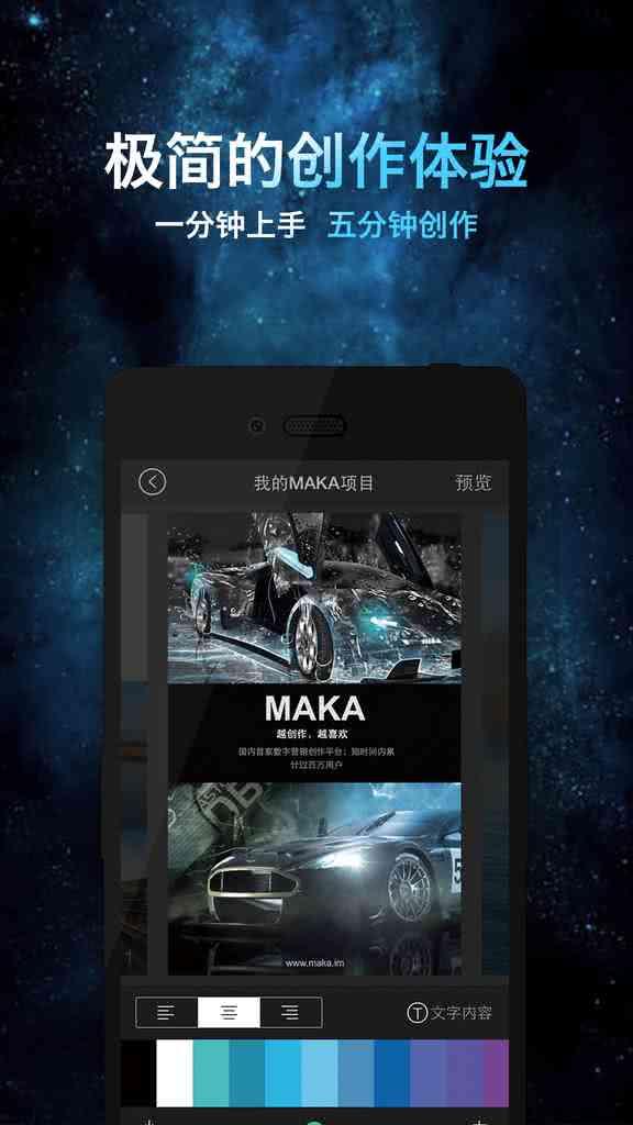 MAKA是国内首家HTML5数字营销创作及创意平台,上线至今已积累200万+注册用户,每月超过1亿人通过MAKA阅读H5图文交互信息。平台内提供海量行业模板及图文编辑工具让用户方便快捷地制作出HTML5项目,极大增强个体在社交媒体上表达故事的能力。与此同时,MAKA免费提供表单收集潜在客户信息,轻松实现自营销。 MAKA 移动客户端方便用户随时创作、编辑、管理H5项目,让你的邀请、宣传、招聘瞬间变成一个个超逼格的故事,在社交网络中瞬间脱颖而出,实现快速传播。