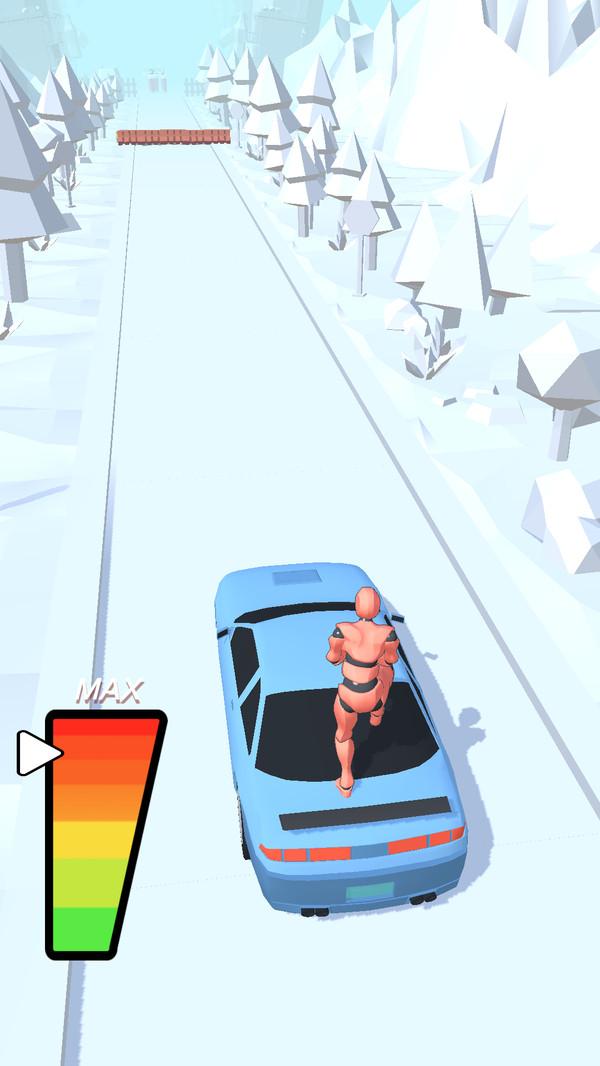 3.在游戏中,你只需要在合适的时间点击屏幕,车就会开出去。当汽车撞上护栏时,会迅速把人甩出去。