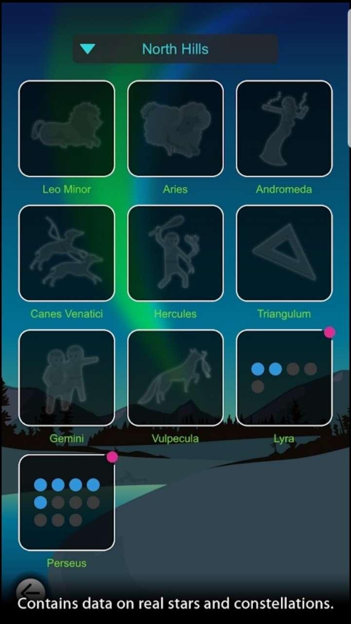 每个星座由3到16颗恒星组成。当你找到星座中所有的星星,你就可以构建星座了。构建操作是一个简单的拼图,你可以拖动星星,把它们放在星座图上的指定位置。