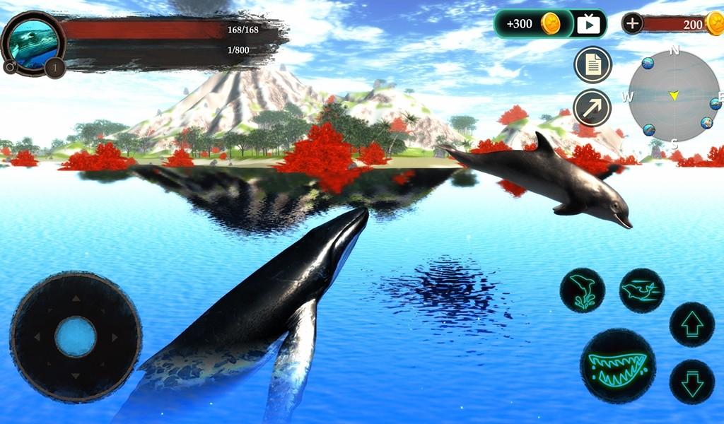 座头鲸的3d模拟游戏,探索海洋和岛屿。