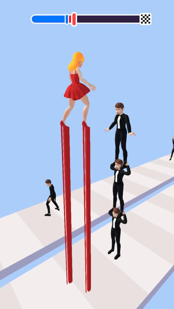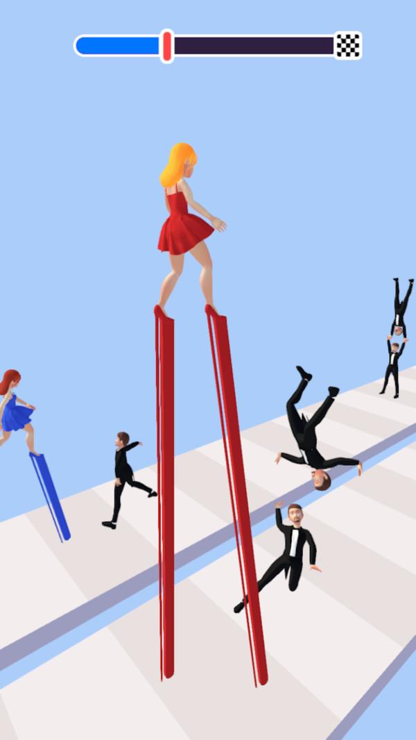 1.在游戏中,玩家需要收集不同的高跟鞋,让它们更长,避开障碍物,完成任务。