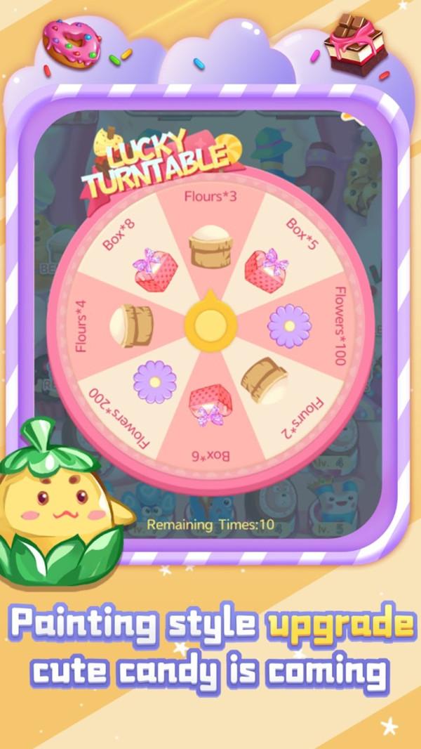甜点大战是一款放置合成抵御类的游戏,在游戏中有各种各样的可爱糖果精灵,将他们不断的合成生成新的更高级的物种,这样在战斗中才更加的有力量,还能通过完成任务,转盘等来获取精灵食物,来提升。