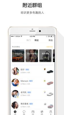 版本更新内容:1. 附近的人筛选增加漫游位置2. 发现页增加群组模块3. 修复若干已知问题