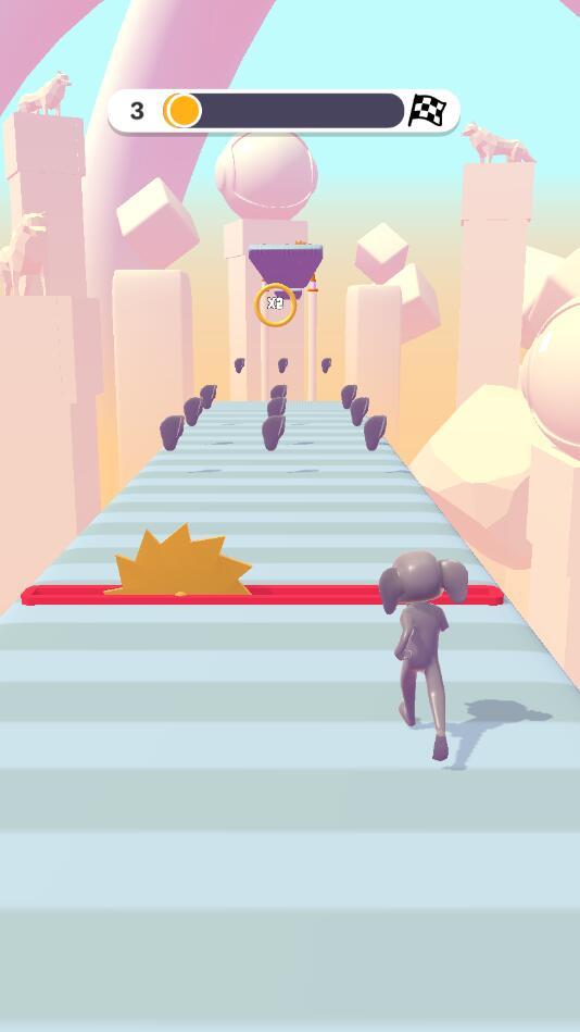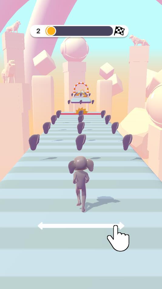 大耳朵跑是一款跑酷游戏,游戏中的跑酷角色是一只大象,您需要控制大象在赛道上左右移动,收集耳朵,让角色的耳朵越来越大,同时注意躲避障碍物,还可以收集一些道具让自己的耳朵成倍变大,这样到达终点之后奖励会更多;