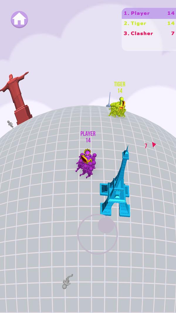 拥挤的地球游戏是一款卡通风格的休闲跑酷了手游,在这个游戏的设定中,玩家将控制人物不断的在地球表面奔跑,不断的吸收同化更多的人,组成自己的军队,利用人数优势打败敌人,当然也不能一直浪,可以等待其他人很焦灼的时候,我们坐收渔翁之利!