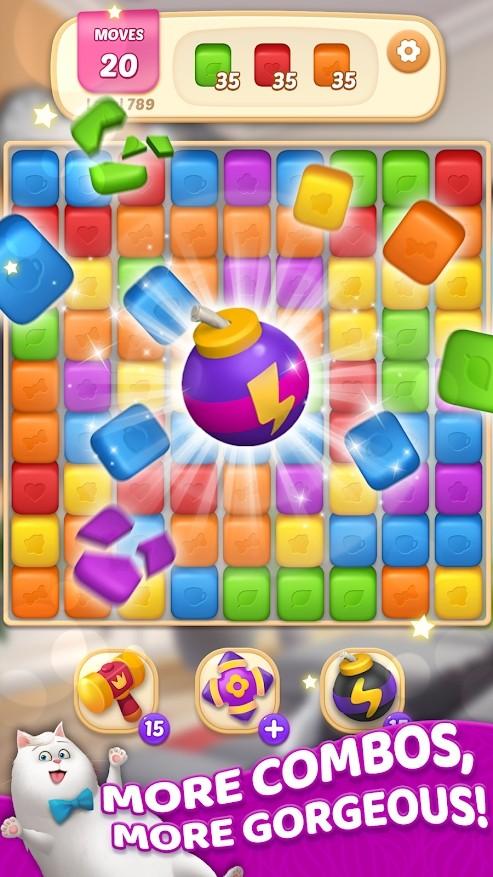 2.通过各种拼图消除关卡,完成这些任务并测试获得道具,解决挑战性的三个消除拼图。