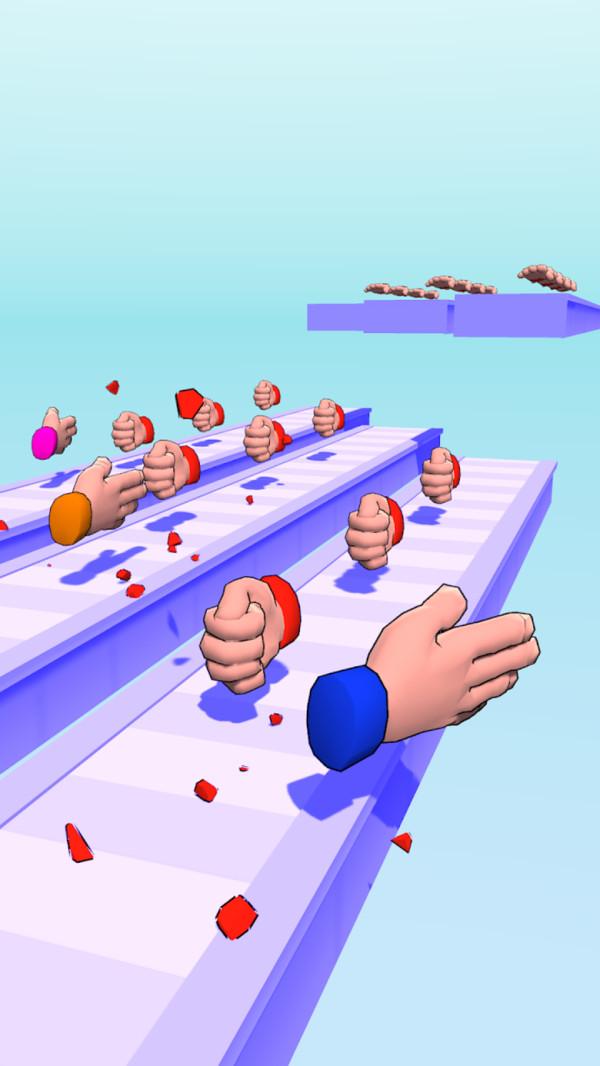 石头剪刀布冲冲冲是一款休闲闯关类的游戏,玩法设定简单,既左右滑动就能改变自己的拳头形状,在石头、剪刀、布之间变换,在关卡中路上会出现很多的手势,找到正确的手势,赢过它,赢到终点时即为闯关成功。