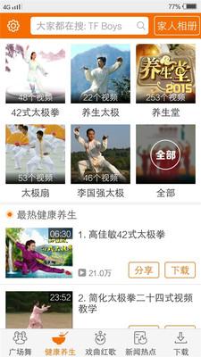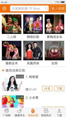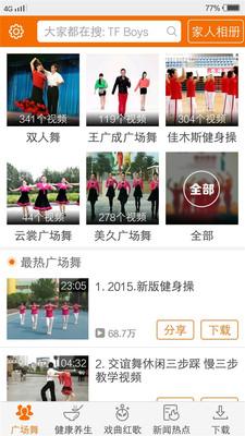 国内最大的广场舞、养生、戏曲红歌社区。收纳最热门的广场舞教学视频,热门舞队精彩视频合集,最科学最权威的养生资讯,最健康最美味的烹饪教学,最经典最动听的戏曲红歌,你想要的这里都有!