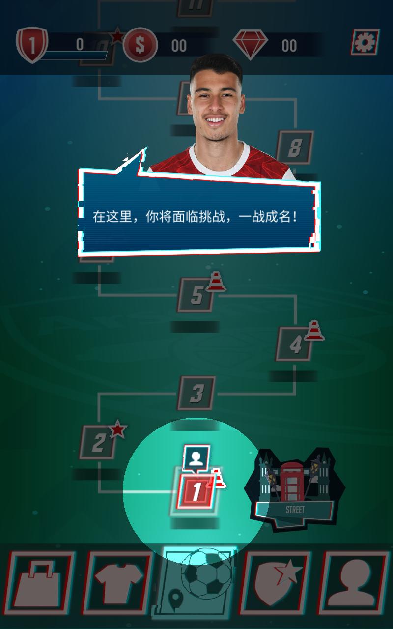 2.操纵角色表演各种杂技表演,展示花式足球技巧,完成你的挑战。