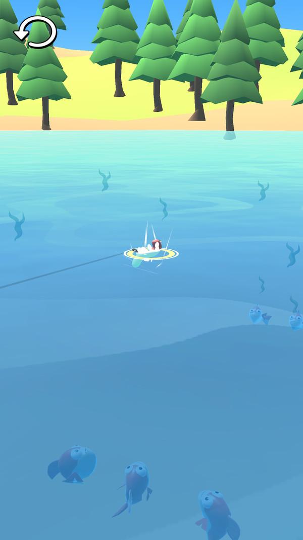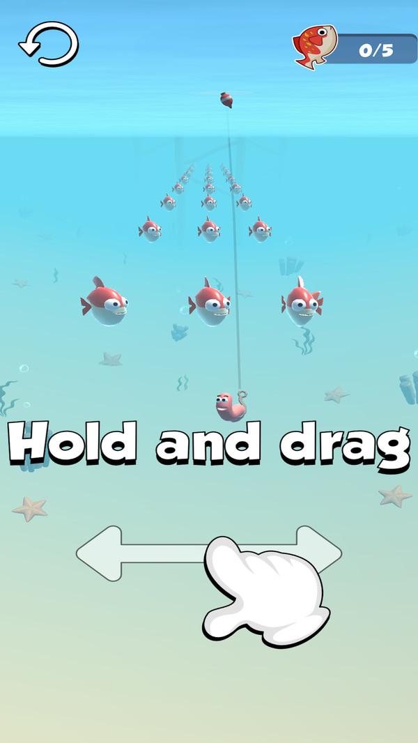 玩家通过左右滑动屏幕来控制方向,鱼竿拉动铁丝在深水中抓鱼。