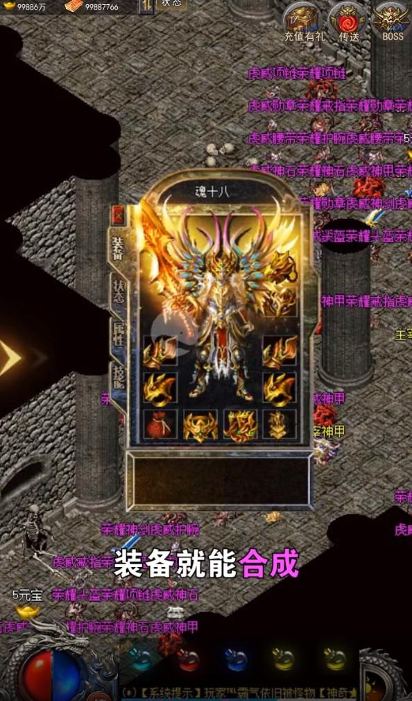 2.通过战斗产生各种副本,用实力击败一些怪物,获得更好的装备武装自己的角色;
