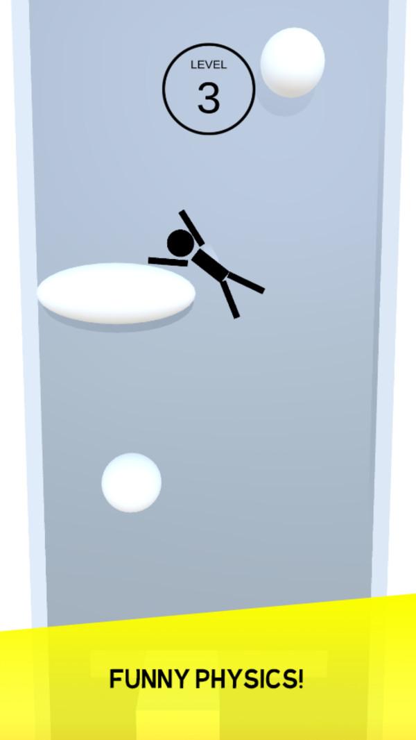 火柴人不跌倒是一款休闲闯关游戏,火柴人在空中开展了一次自由落体活动,一直往下掉,但是你的任务是避免静止或触摸红色障碍物,左右晃动避开所不能触碰的,最终摔在地上即为闯关成功,这款游戏极为解压,在自由落体的过程中释放自己。