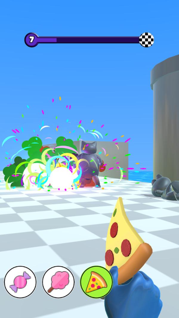 2.在游戏中,你只需要选择敌人想要的食物,点击敌人喂怪物,完成不同的任务就可以得到更多的食物。