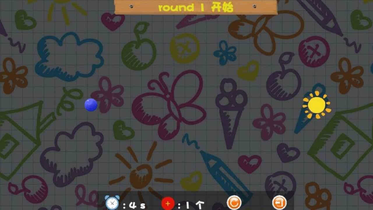 用手指轻松滑动屏幕,挑战很多难题,积累经验,把球推开。