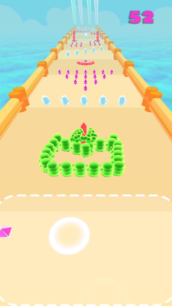 整齐划一的列队跑酷想不想体验一下?在绘制和快跑游戏中,玩家可以画出想要的形状,卡通人物就会组成画的形状,并且保持形状开始跑酷。是不是特别有趣呢?绘制的不一定要有多精美,但是要考虑到赛道上的机关,防止机关过猛!也可以跟小伙伴一起,看看谁的阵型更牢固,更加坚不可摧!