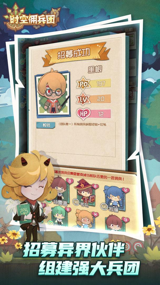 时空佣兵团游戏是一款非常不错的策略冒险手游,游戏的玩法非常丰富,操作非常简单,集经营、冒险等多种玩法于一身,在这里你组建一支强大的兵团,讨伐BOSS,守护这片大陆的和平。