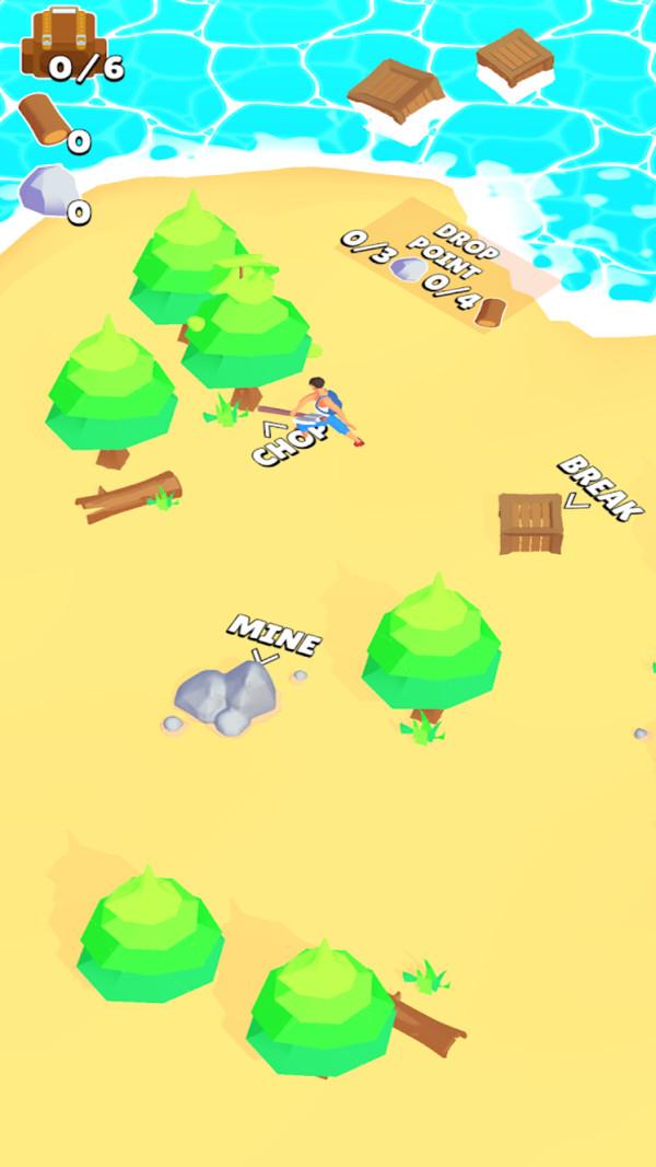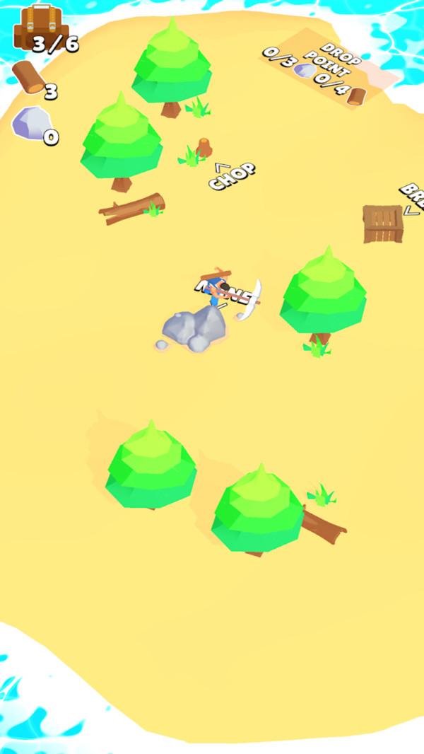 通过点击屏幕,可以完成砍树,收集材料等操作;