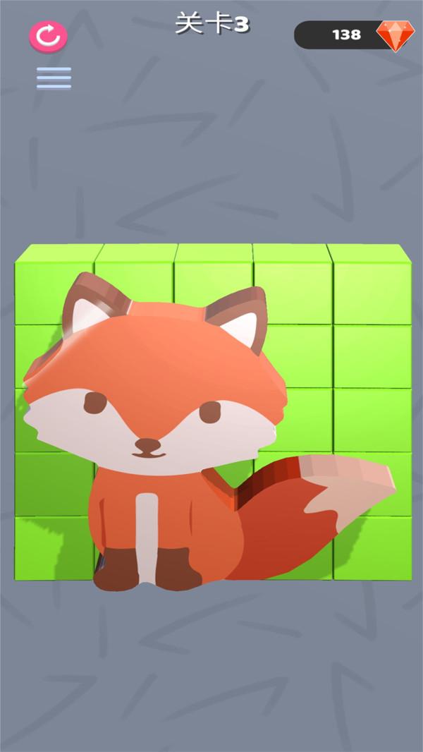 凌乱的积木会按照原图提供,然后一点一点堆砌,形成一个完整的形状。