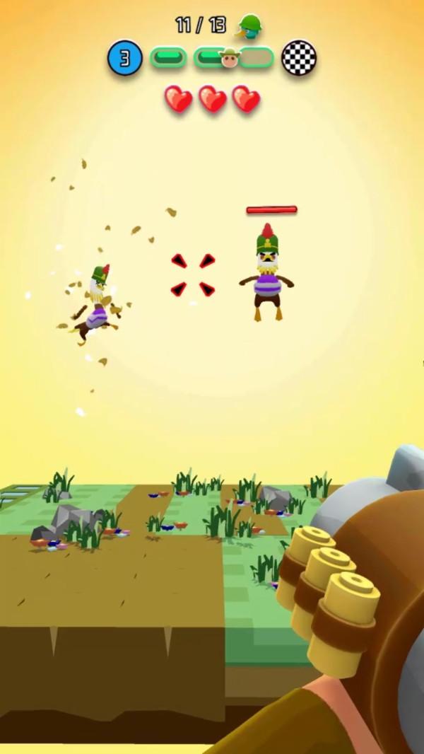 4.游戏中关卡的难度会逐渐增加,玩家需要不断更换更强大的武器来猎鸭,成功完成游戏的关卡