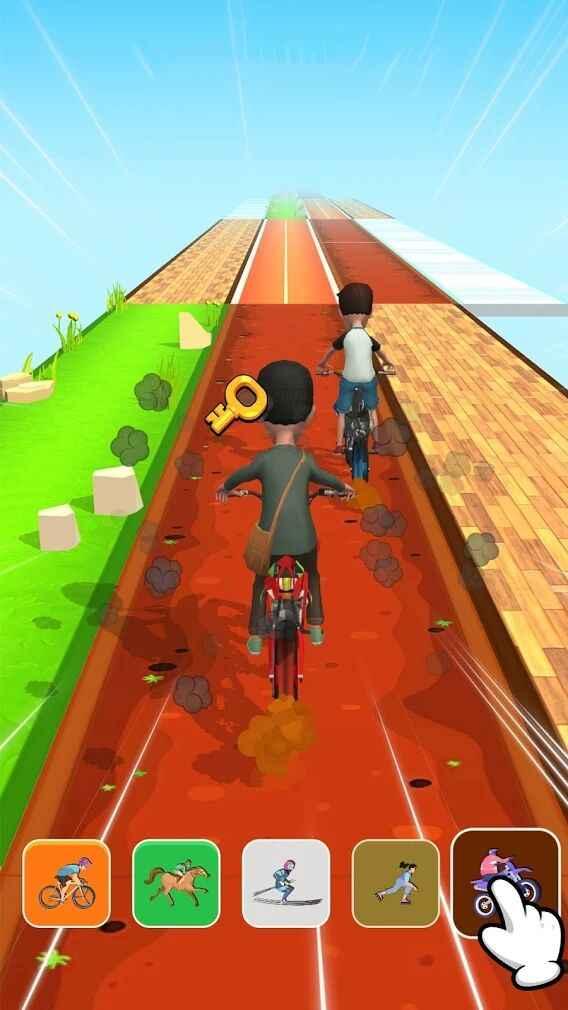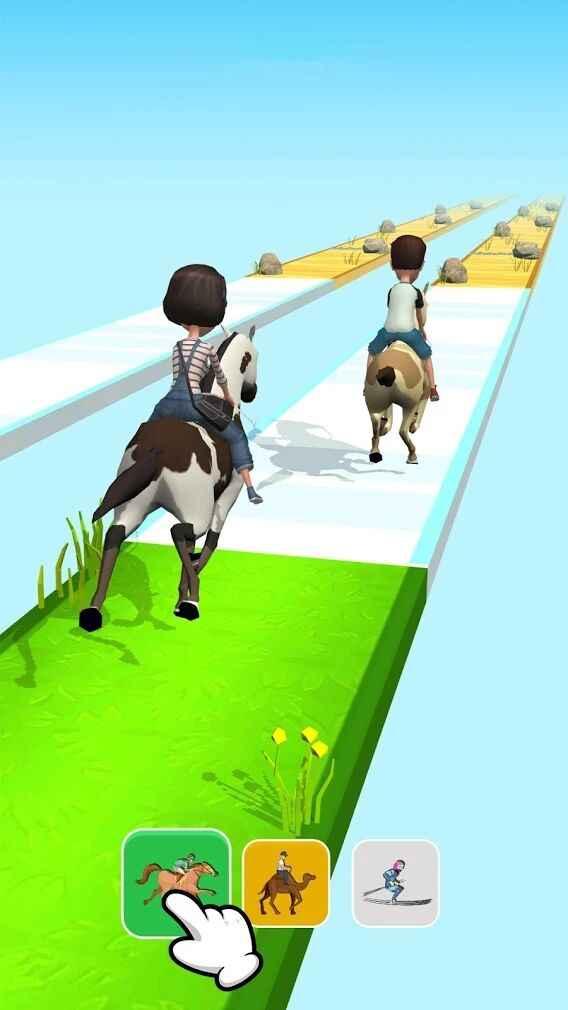 切换坐骑赛跑游戏是一款很有创意的赛跑类游戏,通常来说大多数跑酷游戏都是一种坐骑一场游戏用到底无法更换。不管它的好坏与否。而在这里有超多坐骑等你体验,是在比赛时中途换哦,惊不惊喜?意不意外?多种坐骑需要配合多种赛道才能发挥高效的能力。最终最先到达终点。