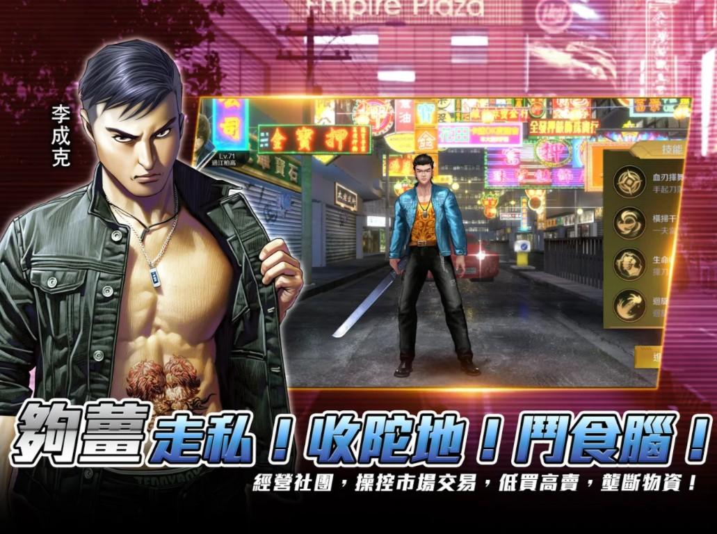 打仔洪兴,四仔东英,三联出鸡精,游戏收录咗过百位脍炙人口嘅江湖猛人!呢次你可以变身成为江湖猛人,喺全新打造嘅香港地图入面横行霸道!吹鸡劈友、掠夺走私货、社团争霸等,俾你体验喺社团由「草鞋」做到「龙头」我最大、我话事嘅真实过程!