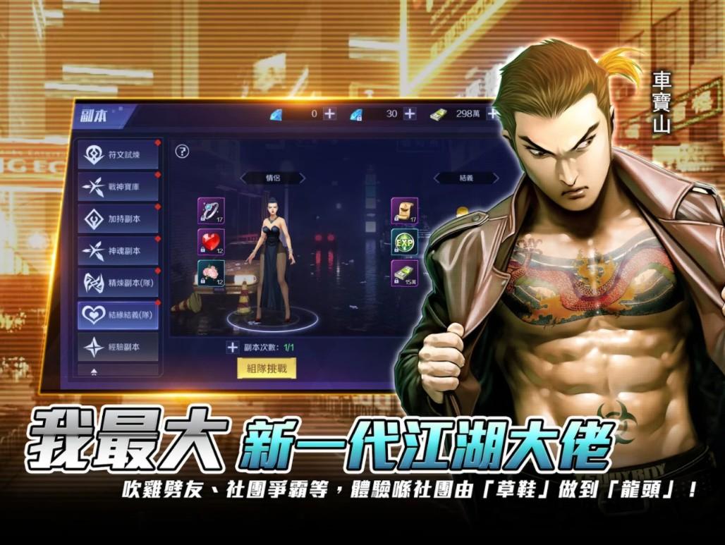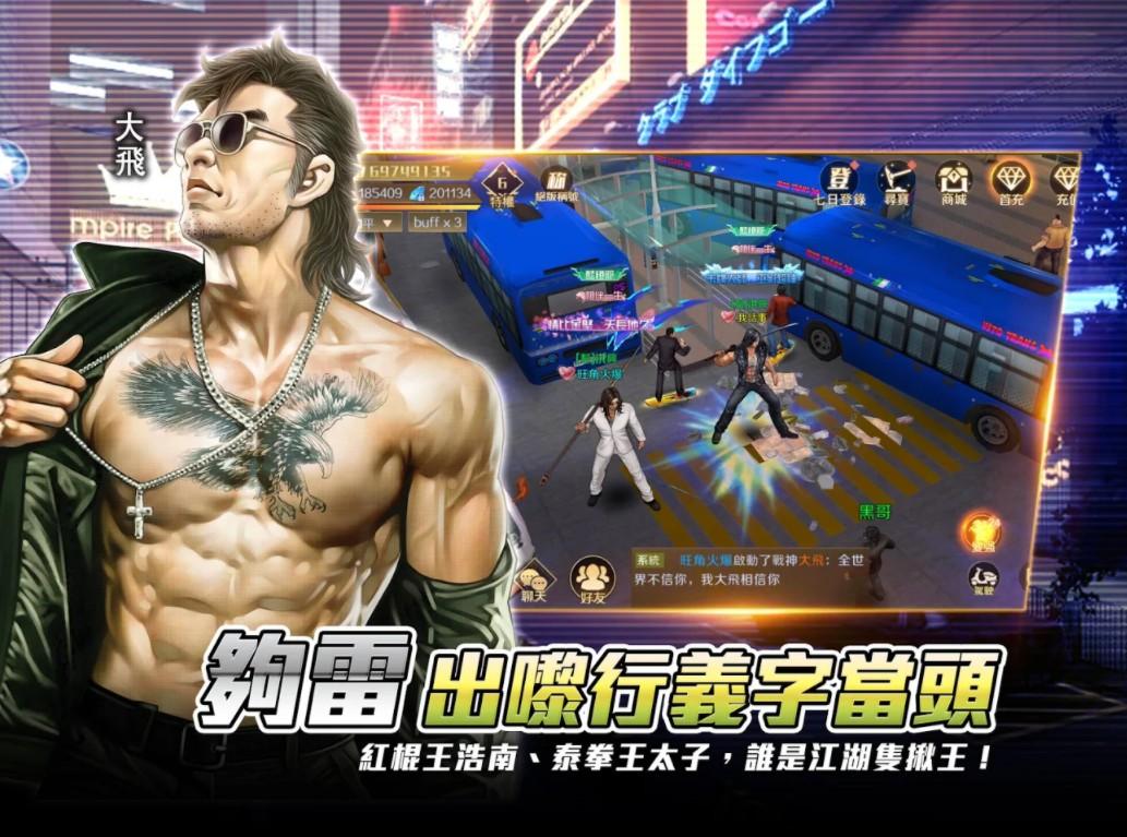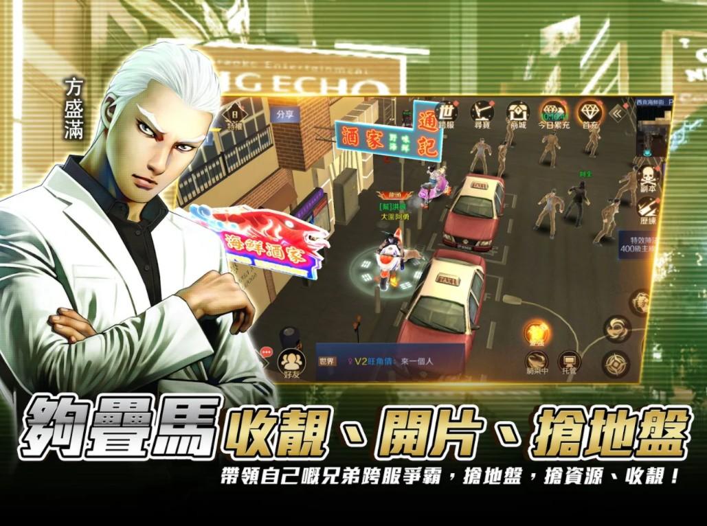 有人嘅地方就有江湖,唔通你就唔想上位,收靓,做大佬?喺游戏入面你唔单止可以成立自己嘅社团做大佬,仲可以带领自己嘅兄弟们进行跨服争霸,抢地盘,抢资源,抢女人!喺江湖地盘争霸入面,紧系唔可以少咗把架撑啦,除咗开山刀、双节棍、铁链呢啲经典「架撑」外,游戏仲有折凳、红绿灯、烧乳猪等五花八门嘅武器,俾你喺开片嘅时候,同时做个最出位,最潮嘅古惑仔。