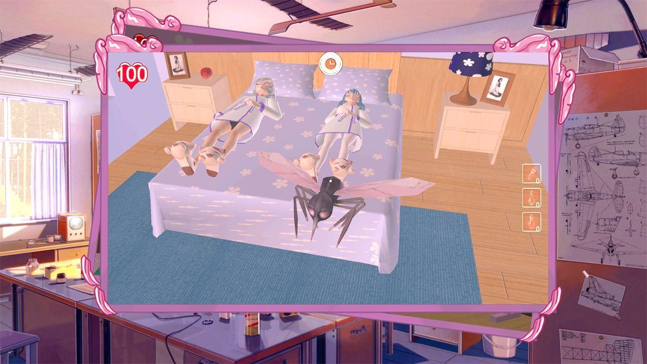 2、操控蚊子进行各种挑战,在骚扰妹子的途中不要忘记吸血来保持自己的健康;