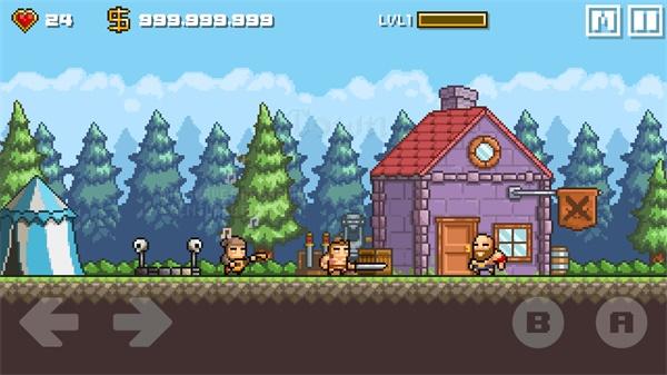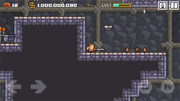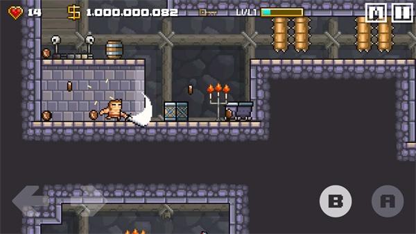 游戏画面质量虽简单,但是内容却丰富多彩,同样在操作上的表现也是如此,玩家只需要点击左下角的左右按键就能控制人物移动,而右下角的A/B按键可以控制人物的攻击和跳跃,并且长按跳跃键还能向下跳跃哦。
