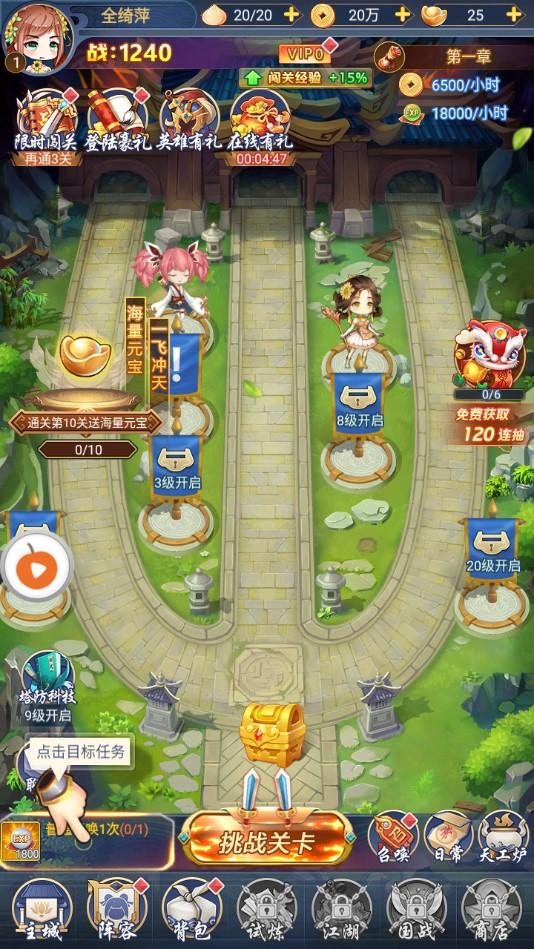 塔塔三国官方版这款全新的经典三国手游,整个的模式中包含的最具趣味的超多传奇的经典策略放置玩法,玩家们需要去通过不同的一般内容上的超烧脑 放置将非常的考验玩家们对于,更多的三国经典武将们将需要去对于敌人们一次最为沉重的打击。