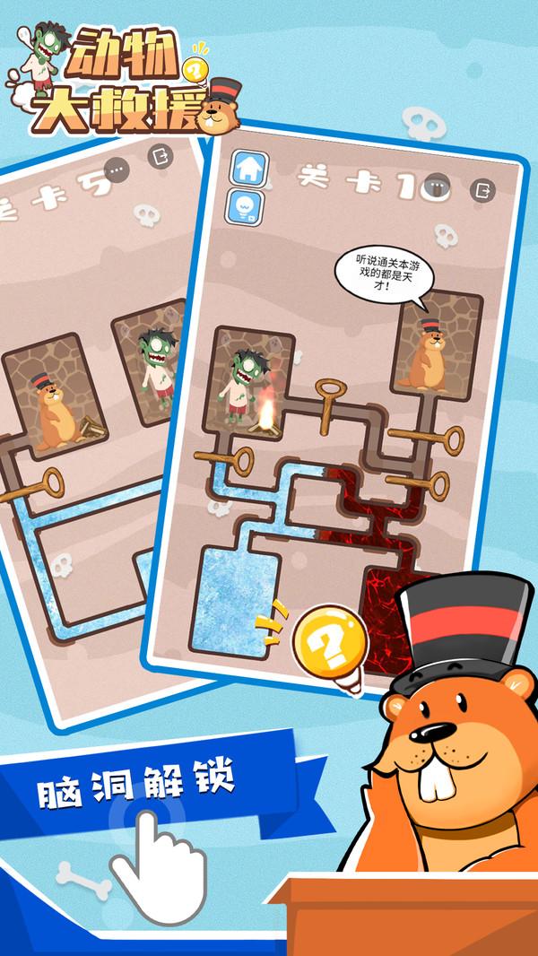 动物大救援是一款益智闯关游戏,在关卡内有坏人和松鼠都被困在里面,你的目标是不要让坏人抓到小松鼠,也别让小松鼠被机关害死了,快发动你的脑筋解救小松鼠吧。
