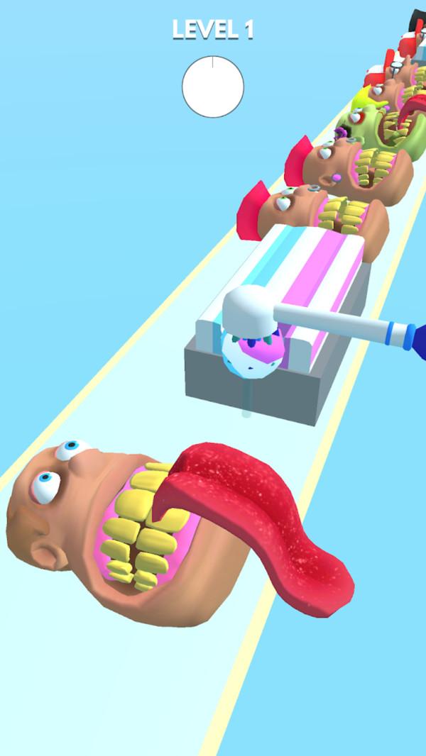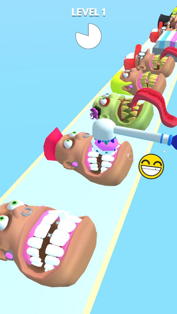 刷牙冲冲冲是一款趣味魔性的小游戏,在你面前有一排的脏牙齿,你需要蘸取牙膏来帮助他们情节牙齿,玩法解压又趣味,是休闲放松时可以选择的好游戏,还不快来试试!