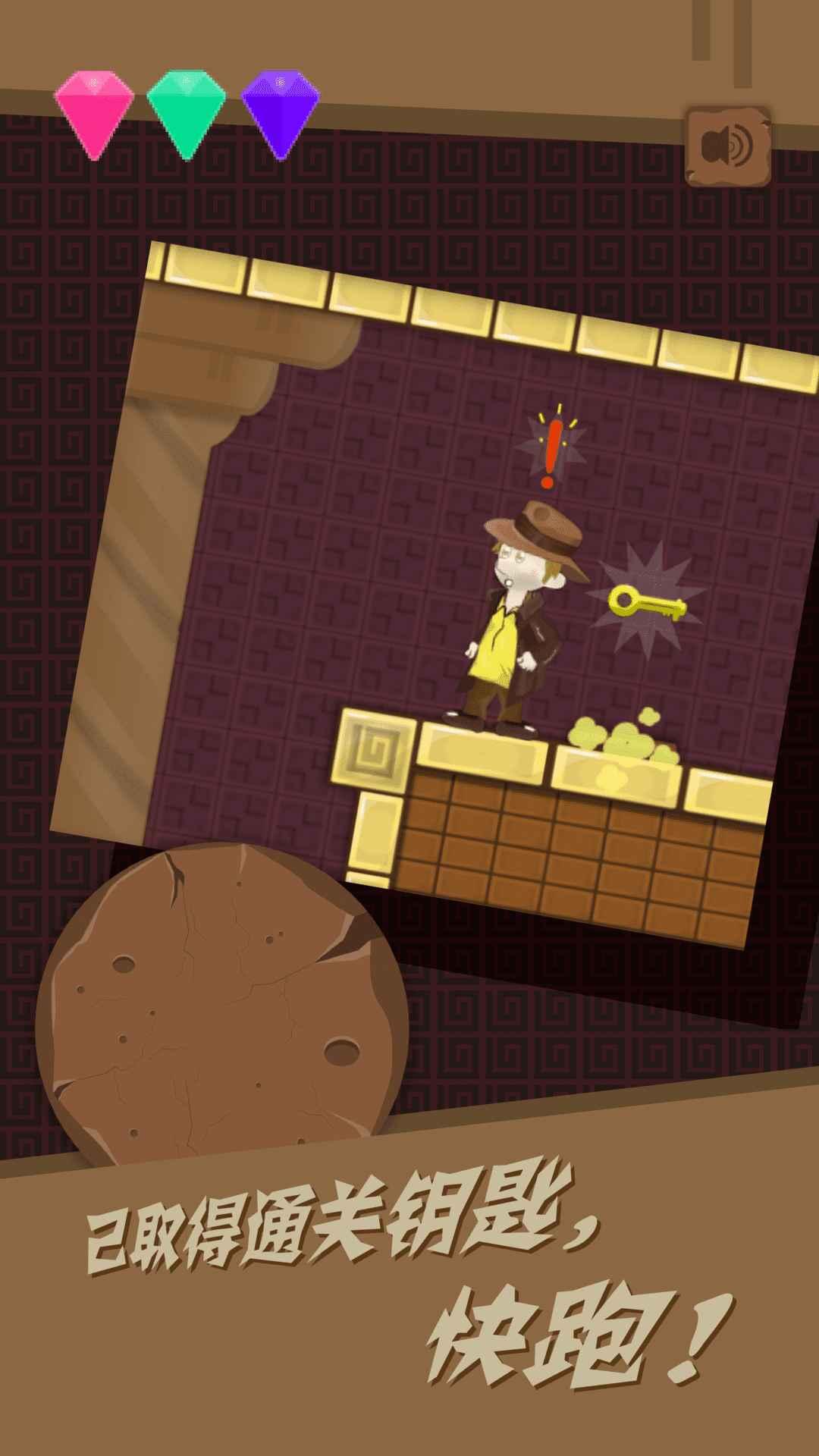 强盗快跑是一款非常好玩的跑酷冒险游戏,您将扮演一名强盗,有人在您身后扔下了一块巨石,您需要快速的前进,越过障碍陷阱,收集钥匙宝藏,避免被巨石追上,成功到达终点才能活下来,一旦您有失误,就会被身后的巨石压扁;