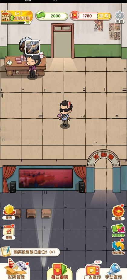 疯狂电影院是一款能够赚取红包的休闲模拟游戏,您是否想过拥有一家电影院,在这款游戏中玩家就能够实现梦想,您需要经营好电影院,让越来越多的顾客前来看电影,这样您就能赚很多的钱,从而扩建升级电影院;