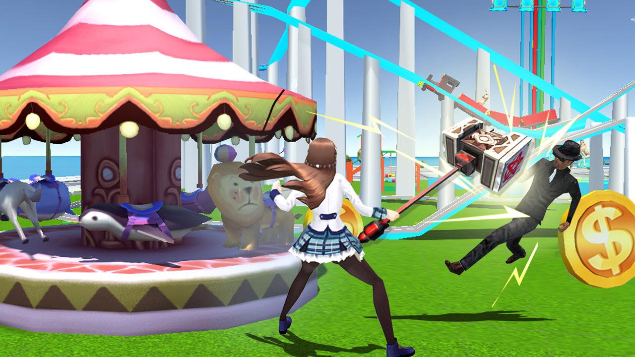 -樱花游戏里拥有大型游乐场,无聊之余可以带着同学去做做过山车哦~
