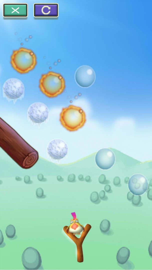 玩家主要通过拖拽发射来玩游戏,针对屏幕上的气泡,成功的将鸡发射到气泡中通关;