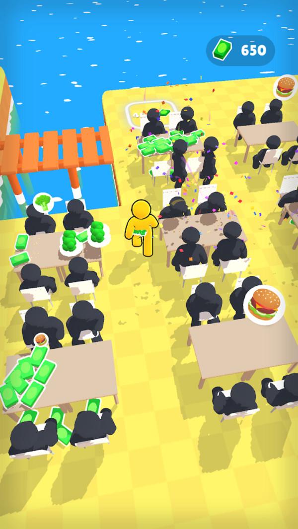 1.当后厨房的食物准备好了,你需要拿起后厨房的食物,送到顾客的桌子上。