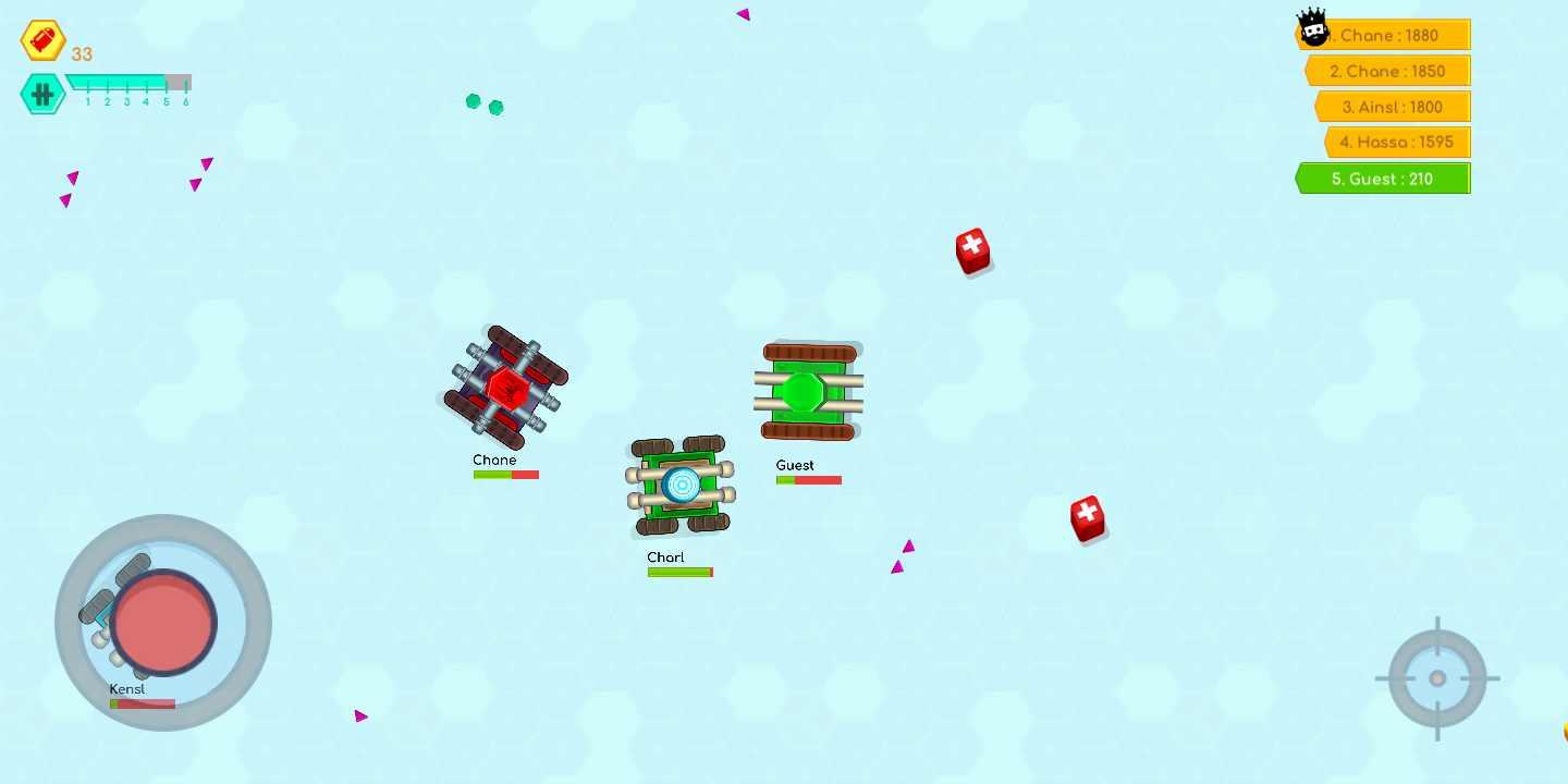 战斗io无限金币版是一款卡通画风的坦克对战游戏,简洁清新的画面,没有一丝多余的杂质,可以非常的放松。有趣的坦克设定,天马行空的坦克炮弹。一开始体验绝对是又惊喜又好笑。别出心裁的游戏方式,一定能获得你的芳心!