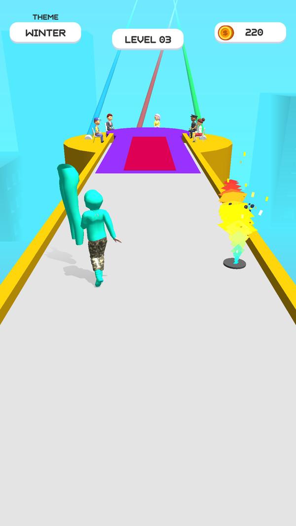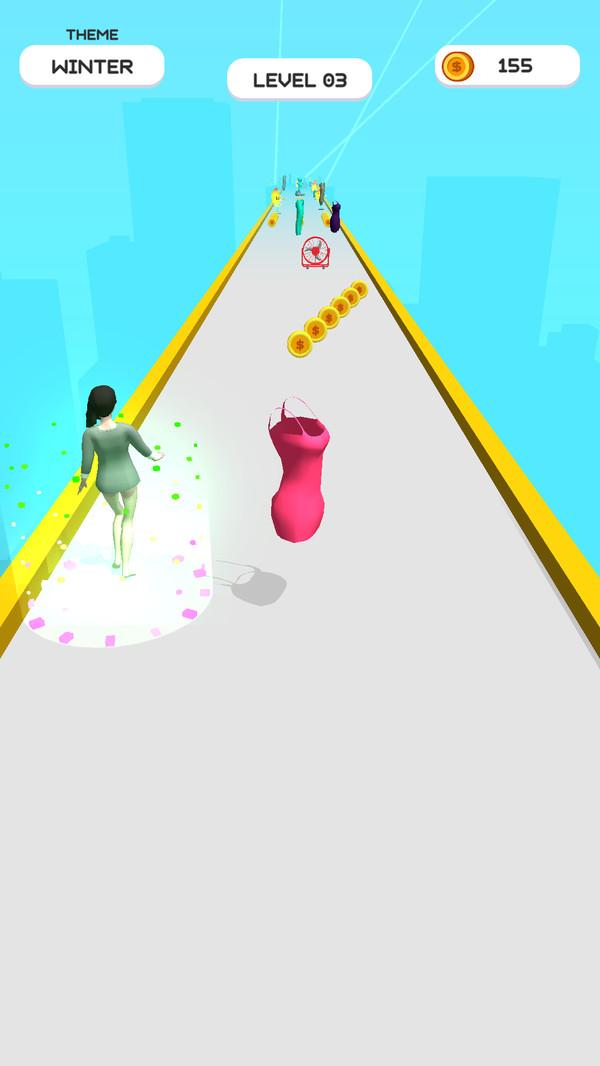 姐爱穿衣服手游是一款非常简单的休闲闯关小游戏,玩家在游戏中只需要运用一下自己的反应力操作主角不断地在关卡中前进,前进的道路上有许多风格不同的衣服,选择合适的衣服床上他到达终点获得高分。