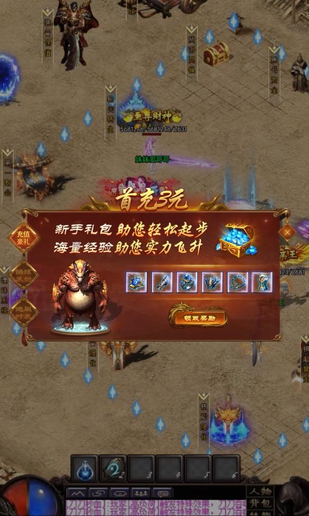 2.传奇三大职业风格,三大经典职业特色互攻互守,华丽技能特效,免费无限PK。