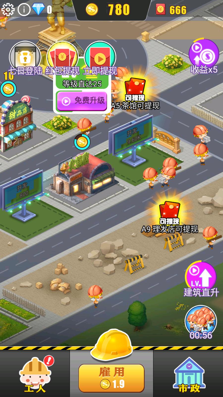 3.通过每天完成一套房子,可以增加收入,直到成为宜居城镇。