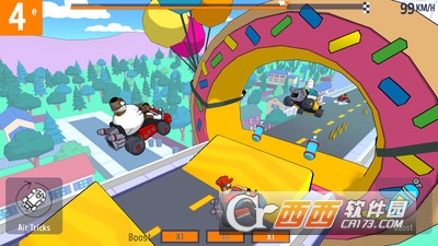 2、收集各种造型怪异的卡丁车!使用各种手段将对手撞翻在赛道上;