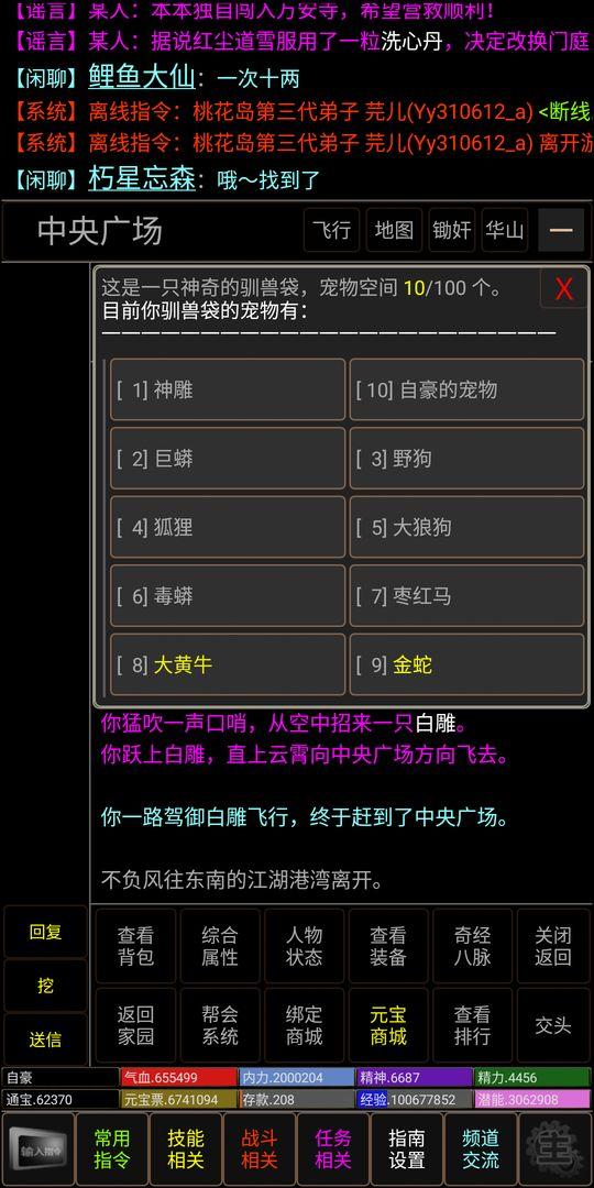 有丰富副本玩法,装备系统,宠物玩法,主要特色是武学解密,高级武学皆可通过解密获得。日常任务可获得通宝,通宝可以购买商城道具。