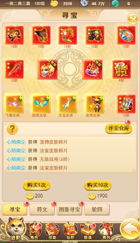 8.寻宝可获得极品道具与装备,对主角得到极大提升,有空的时候寻一下宝,会获得额外收获