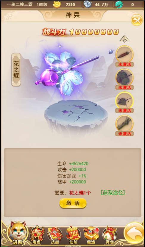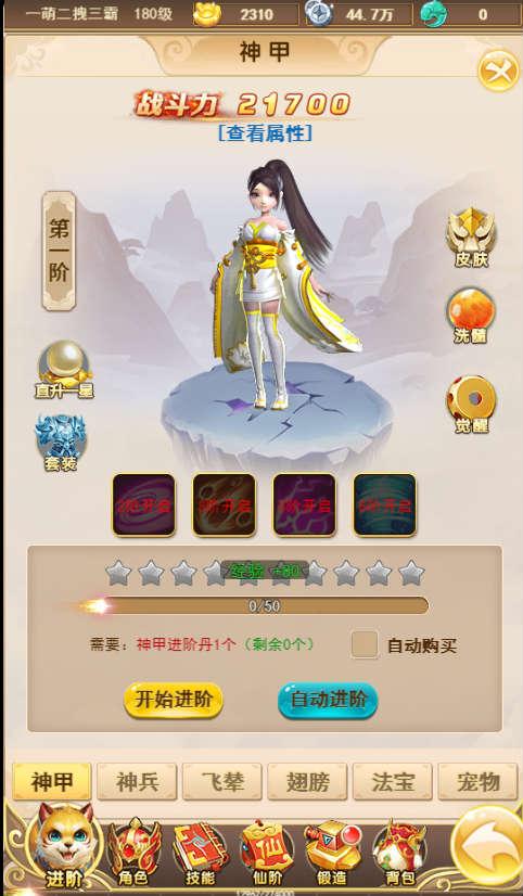 6.进阶里可改变主角、神兵、翅膀等皮肤,超多搭配,随君任选