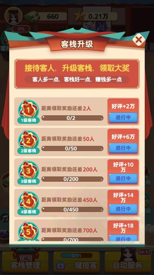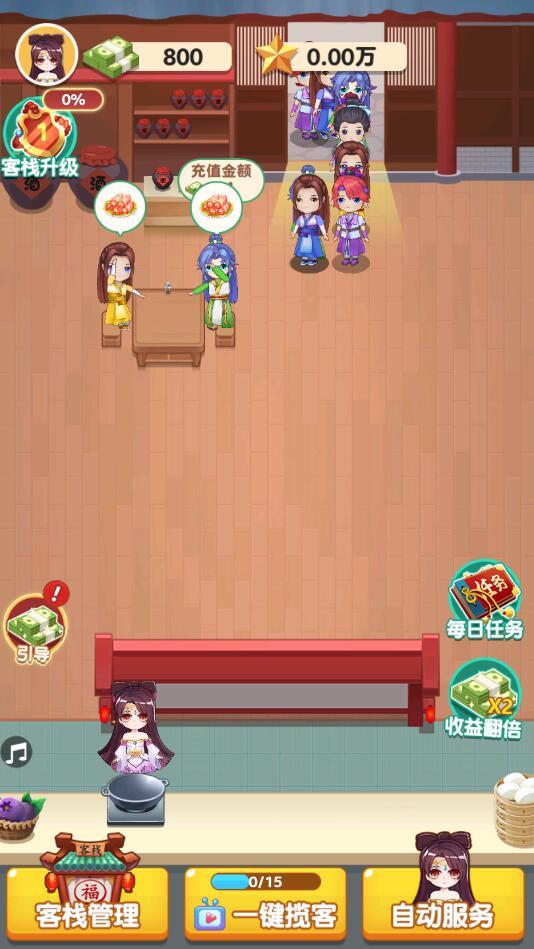 听枫客栈游戏给玩家破解成了免广告获得奖励,这款游戏中您将经营着一家客栈,您需要学习制作各种美味的食物来吸引客人,提升客栈的人气,并不断的装修客栈,让客栈的生意越来越红火,成为远近闻名的客栈;